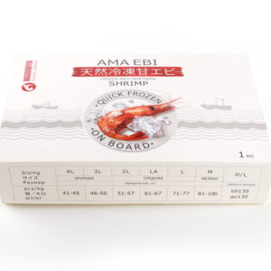 Ama Ebi - это холодноводные креветки, размером 70-90 мм, выловленные в глубинах Охотского моря. По полезным свойствам они превосходят своих прибрежных сородичей. Ama Ebi переводится как «сладкая креветка» и отличается нежным, тающим во рту сладковатым мясом и характерным розовым цветом. В отличие от зеленоватых тепловодных креветок, Ama Ebi даже в сыром виде свойственен розовый оттенок. Заморозка прямо на судне позволяет сохранить их вкусовые и полезные свойства. Креветки - низкокалорийный продукт и источник белка, витаминов и аминокислот Омега-3.